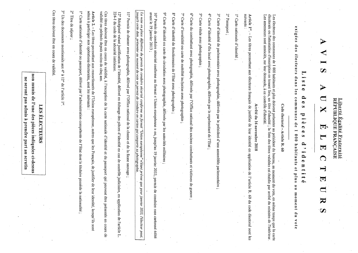2- En plus de la carte électorale ou attestation d'inscription, il est obligatoire de présenter une pièce d'identité lors du vote.